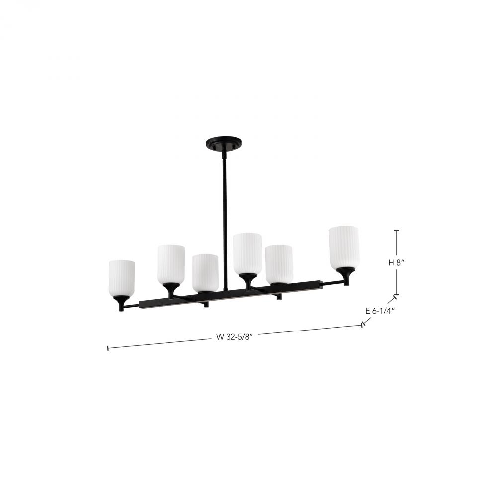 Solara; 6 Light Island Pendant; Matte Black Finish; Frosted Ribbed Glass
