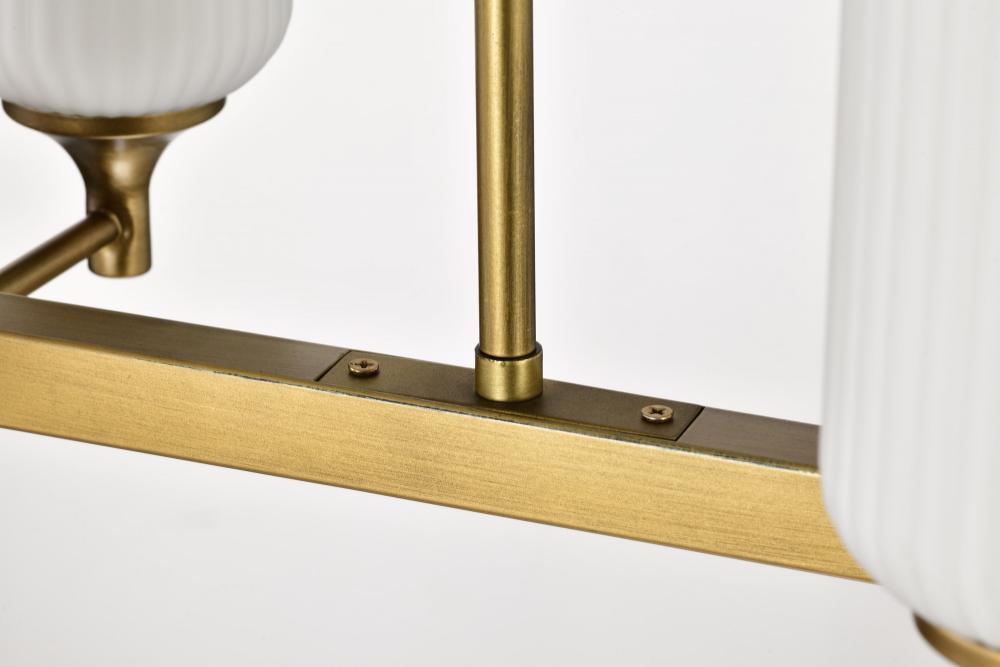 Solara; 6 Light Island Pendant; Natural Brass Finish; Frosted Ribbed Glass