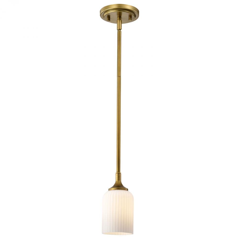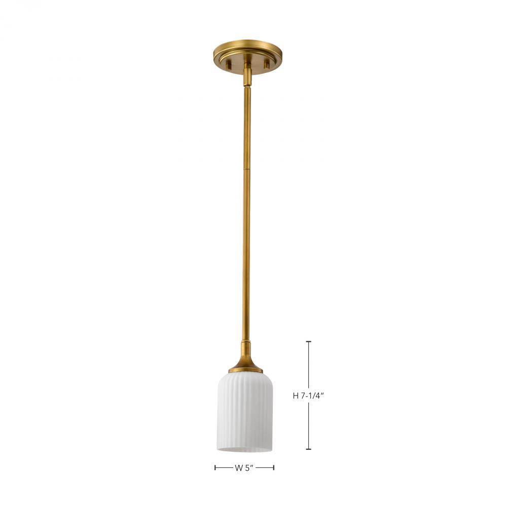 Solara; Mini Pendant; Natural Brass Finish; Frosted Ribbed Glass
