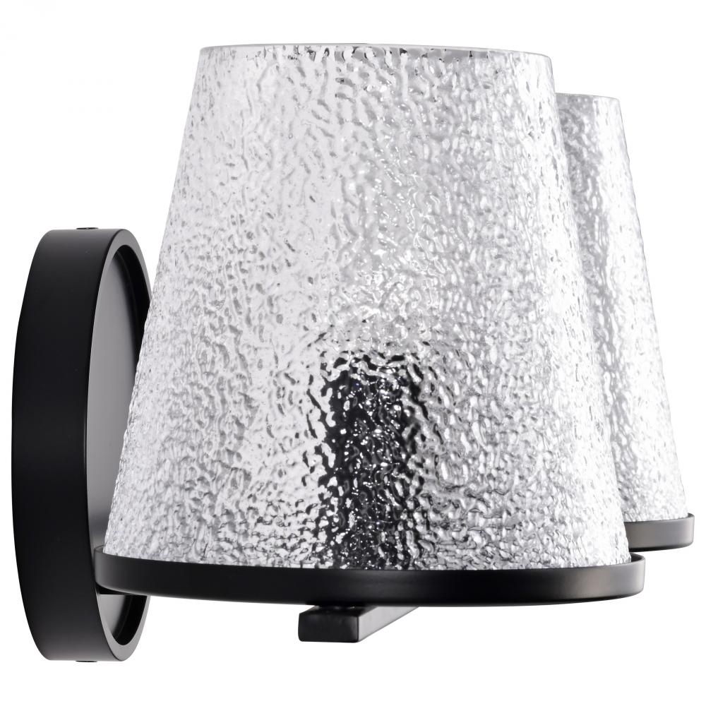 Valentine; 2 Light Vanity; Black Finish; Hammered Glass