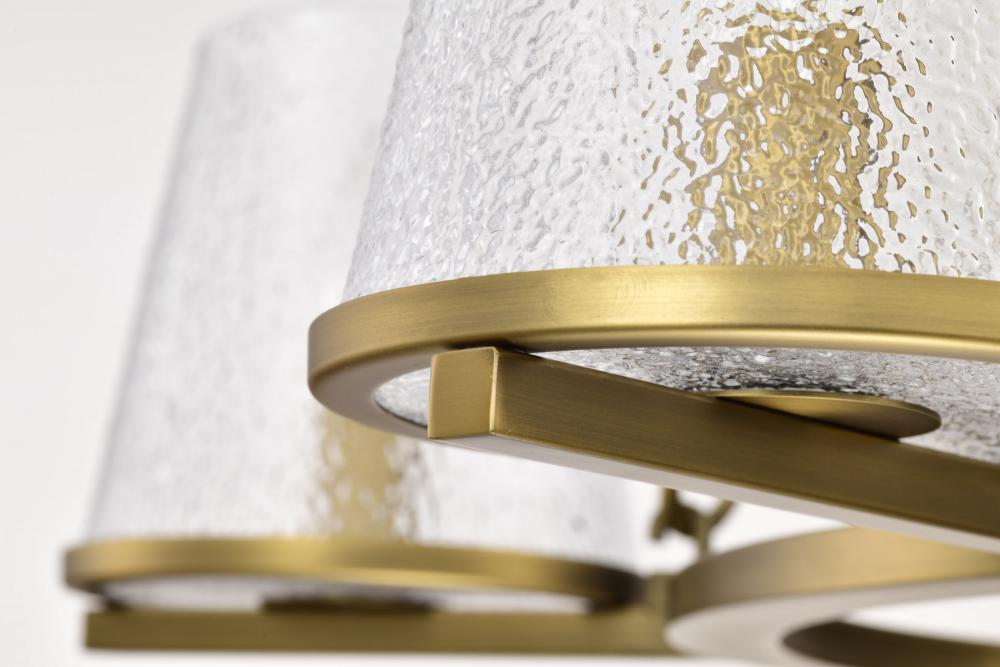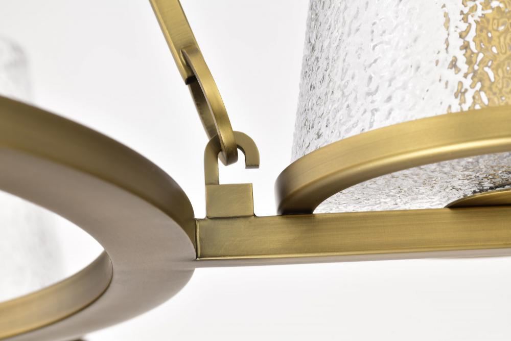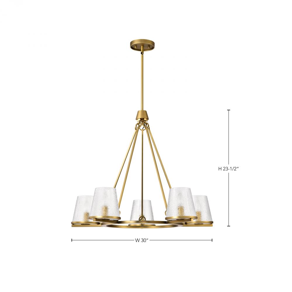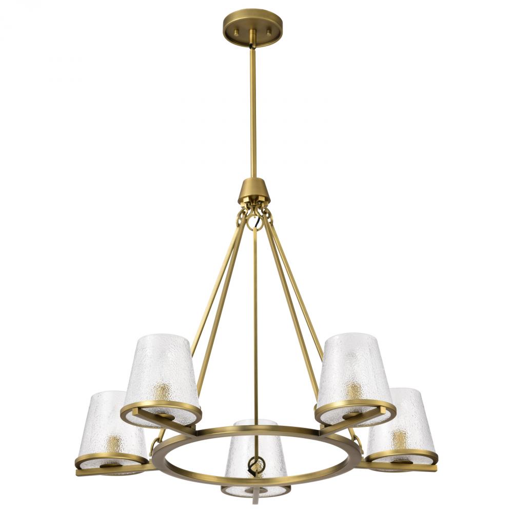 Valentine; 5 Light Chandelier; Vintage Brass Finish; Hammered Glass