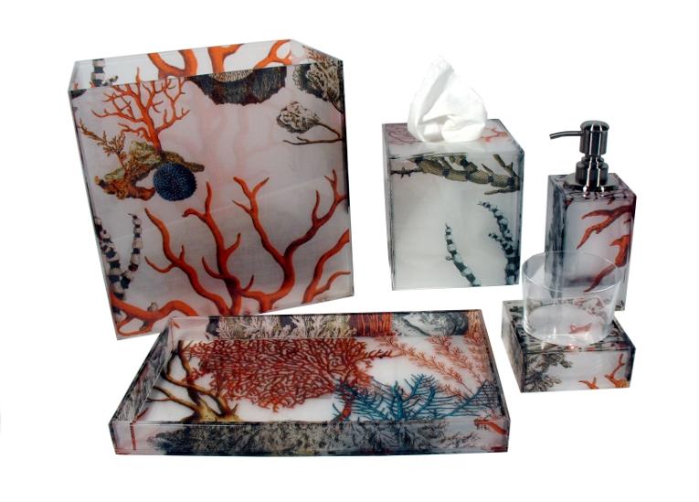 Fanciful motifs from the sea are highlighted in acrylic. Made in Italy.