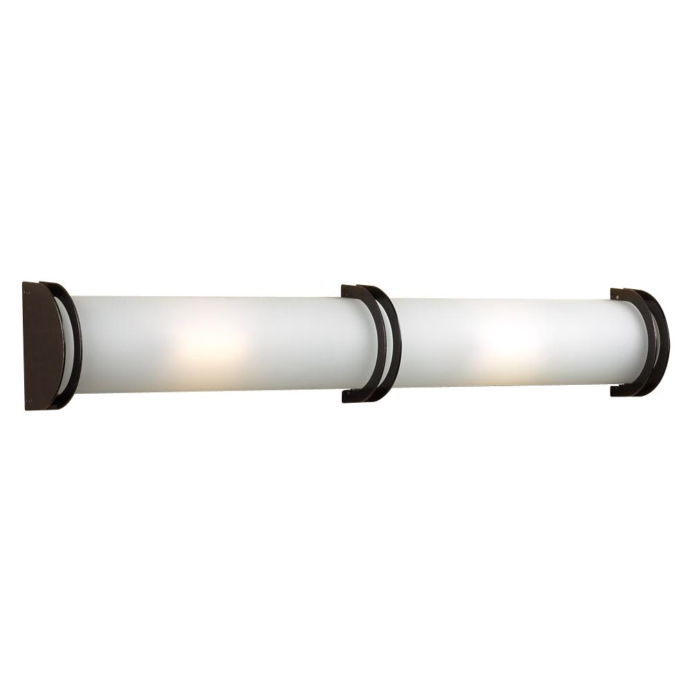 Finished In Oil Rubbed Bronze This 2 Light Vanity From The Chevron Collection Is In A League Of Its' Own. 6" Inches High And 36" Wide With Two 100W Halogen Bulbs You Are Guaranteed Just The Correct Amount Of Light. Acid Frosted Shade Completes This Stylish Modern Vanity Light.