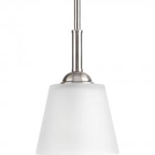 The one-light mini-pendant from the Arden collection offers a comfortable silhouette that is both rustic and modern. A substantial stem suspends etched glass. This transitional style fixture is finished in Antique Bronze.