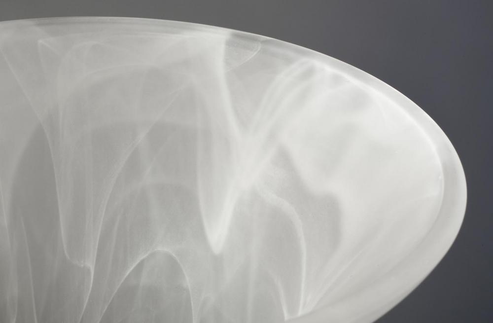 Brushed Nickel finish.;Alabaster glass.;Presents softly diffused light.;Finely crafted frame with striking metallic features.;Chain and ceiling mounts both included.