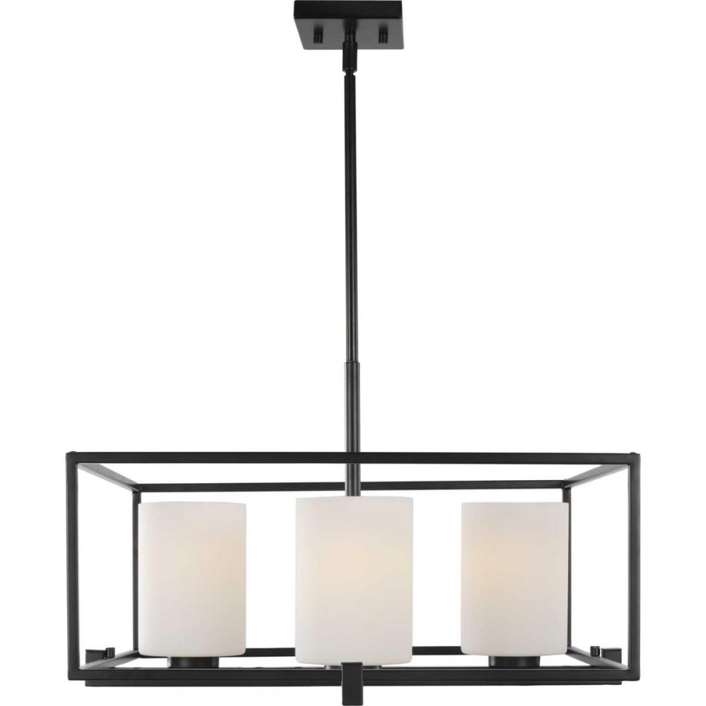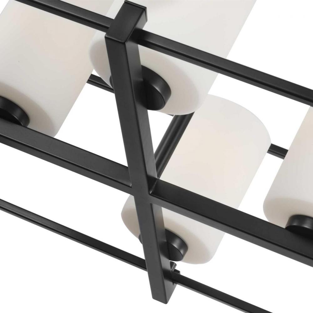 Beautiful opal glass shades visually calm the sharp edges of the boxy frame in a masterful stroke of design excellence.;The frame is coated in a classic black finish that contrasts the light shades.;The light fixture is just right for spaces in need of a s