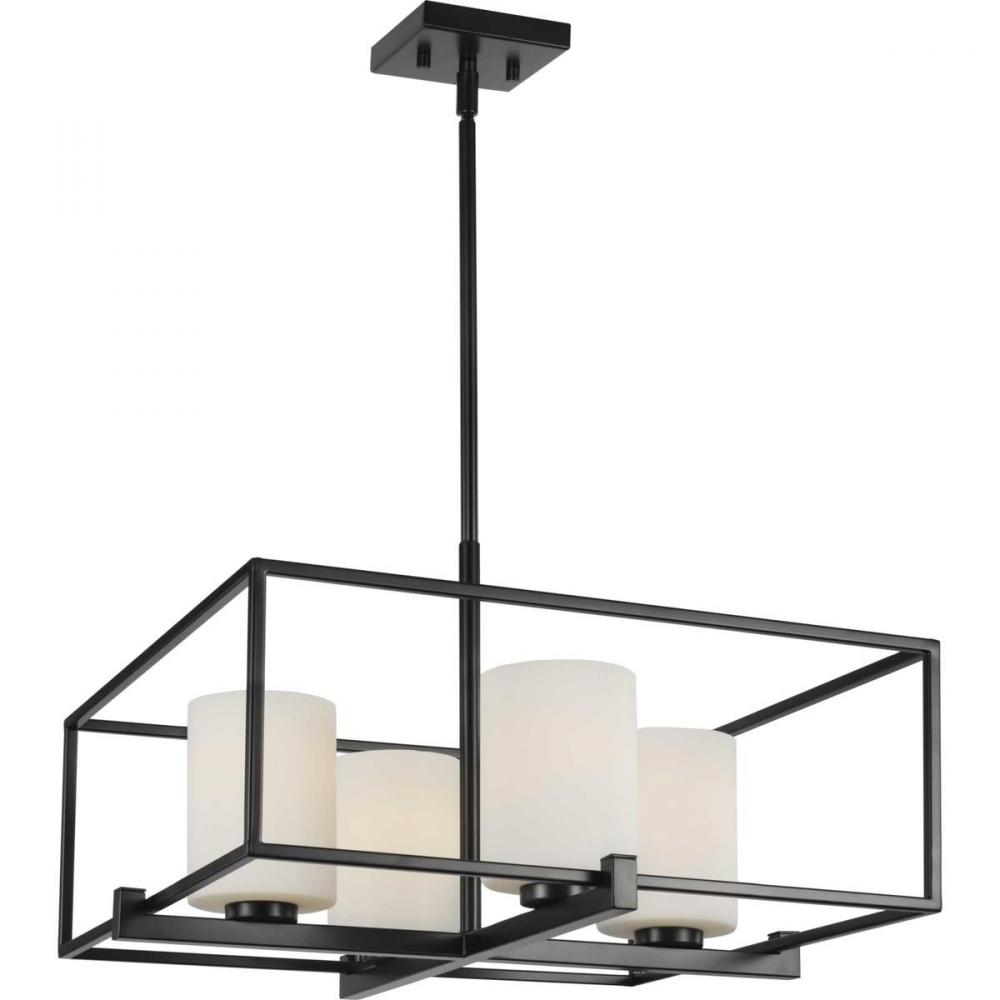 Chadwick Collection Four-Light Matte Black Etched Opal Glass Modern Chandelier Light