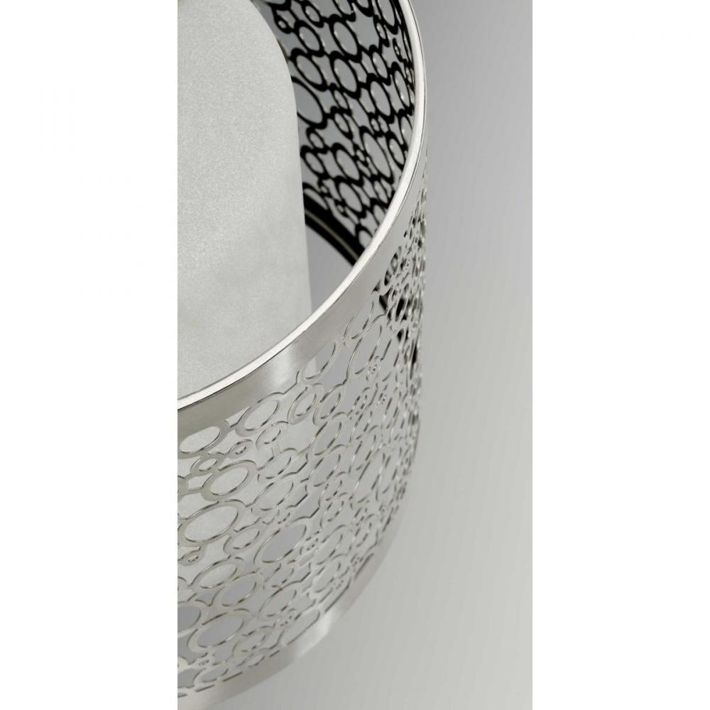 Concentric circular pattern in a Brushed Nickel metal shade.;Etched parchment glass.;Contemporary styling.;Dimmable to 10% with many ELV dimmers;1,211 lumens 71.2 lumens/watt per module (source);3000K color temperature, 90+ CRI.