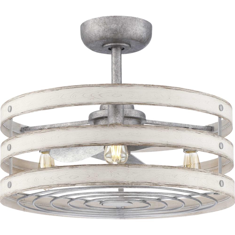 Simultaneously cool and illuminate your farmhouse or seaside home with the Gulliver ceiling fan. Three Antique White Wood bands wrap together to create a rustic, open-cage design that offers style while generating a revitalizing, cool breeze.