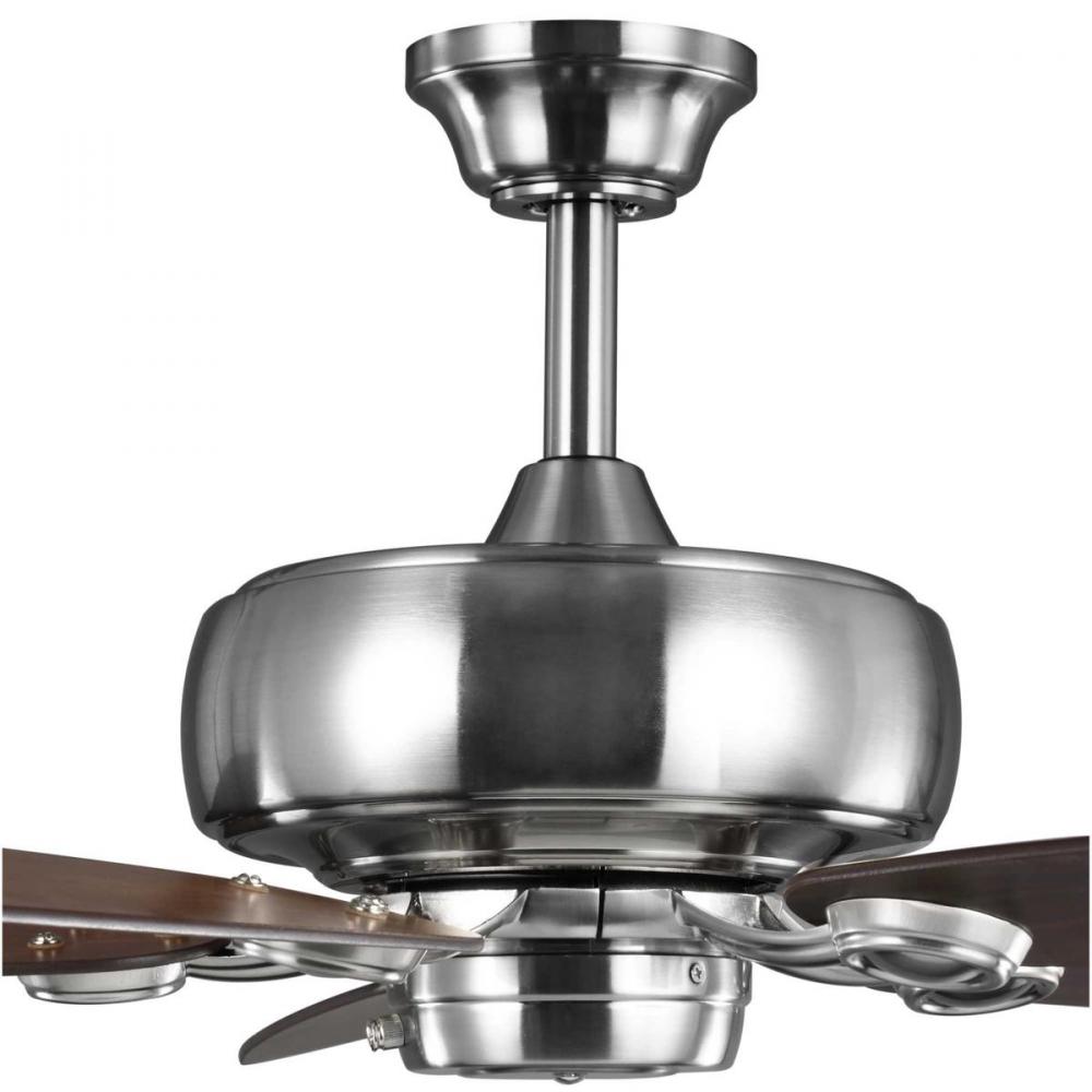 The 52” Edgefield features an updated and stylish shell-shaped blade holder containing five sweeping blades;Energy Star rated;Powerful and quiet DC motor;Reversible American Walnut and Cherry blades;Classic Brushed Nickel finish;Beautiful and expansive i
