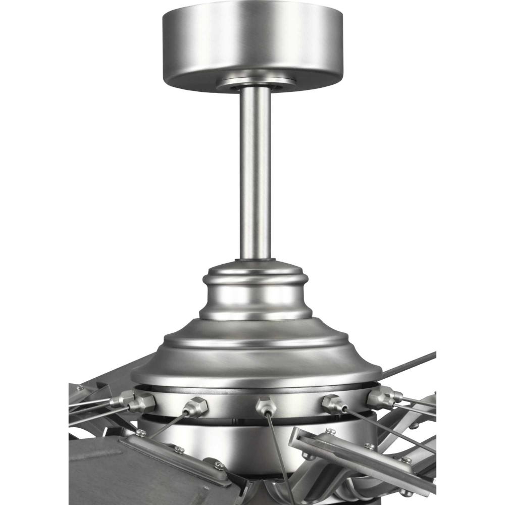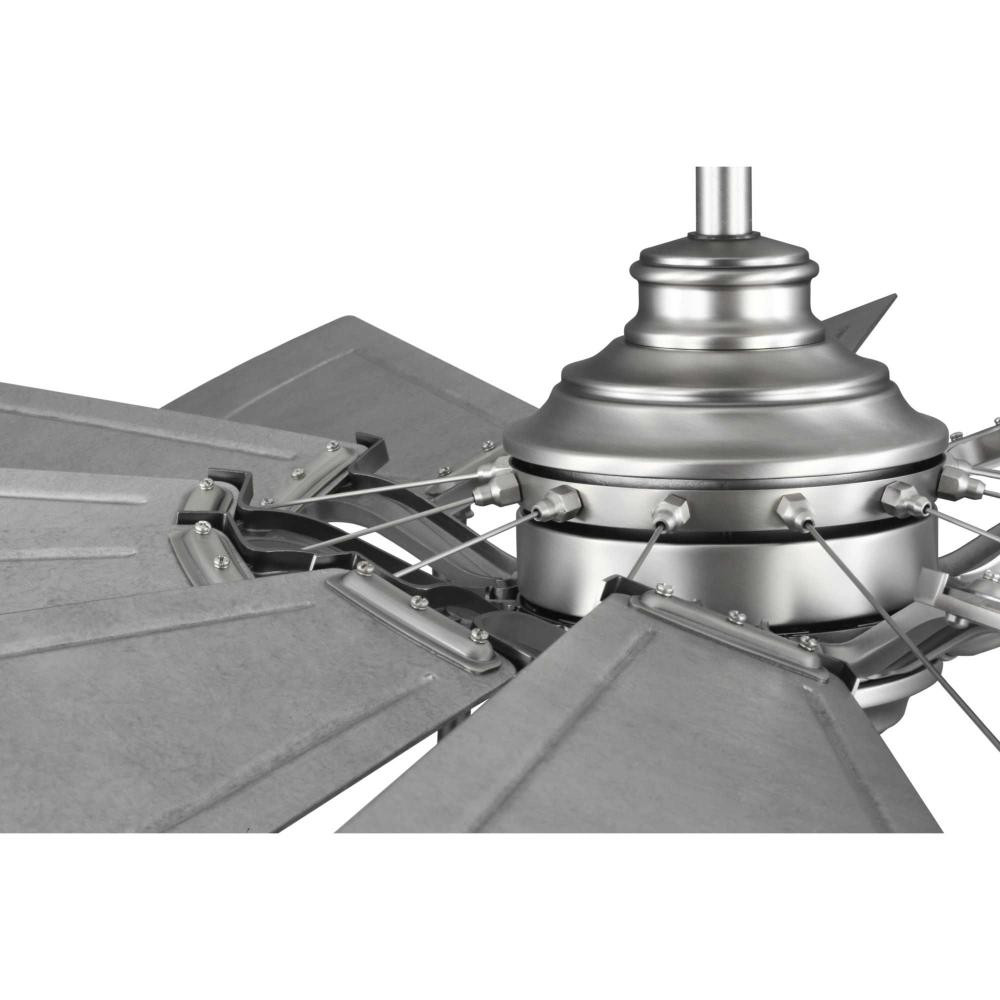Relax under the refreshing breeze of the Springer Collection 60-Inch Windmill Ceiling Fan. Its large scale and windmill-style blades make it ideal for any great room, bedroom, living room, or bonus room in modern farmhouse, rustic, and coastal-style settings. The antique nickel body is complemented with twelve sweeping blades coated in a Galvanized affect for a rustic flair. Its cULus damp rating makes this lovely fan ideal for use inside or in outdoor covered areas. A 6 speed full-function remote control and wall bracket are included. .
