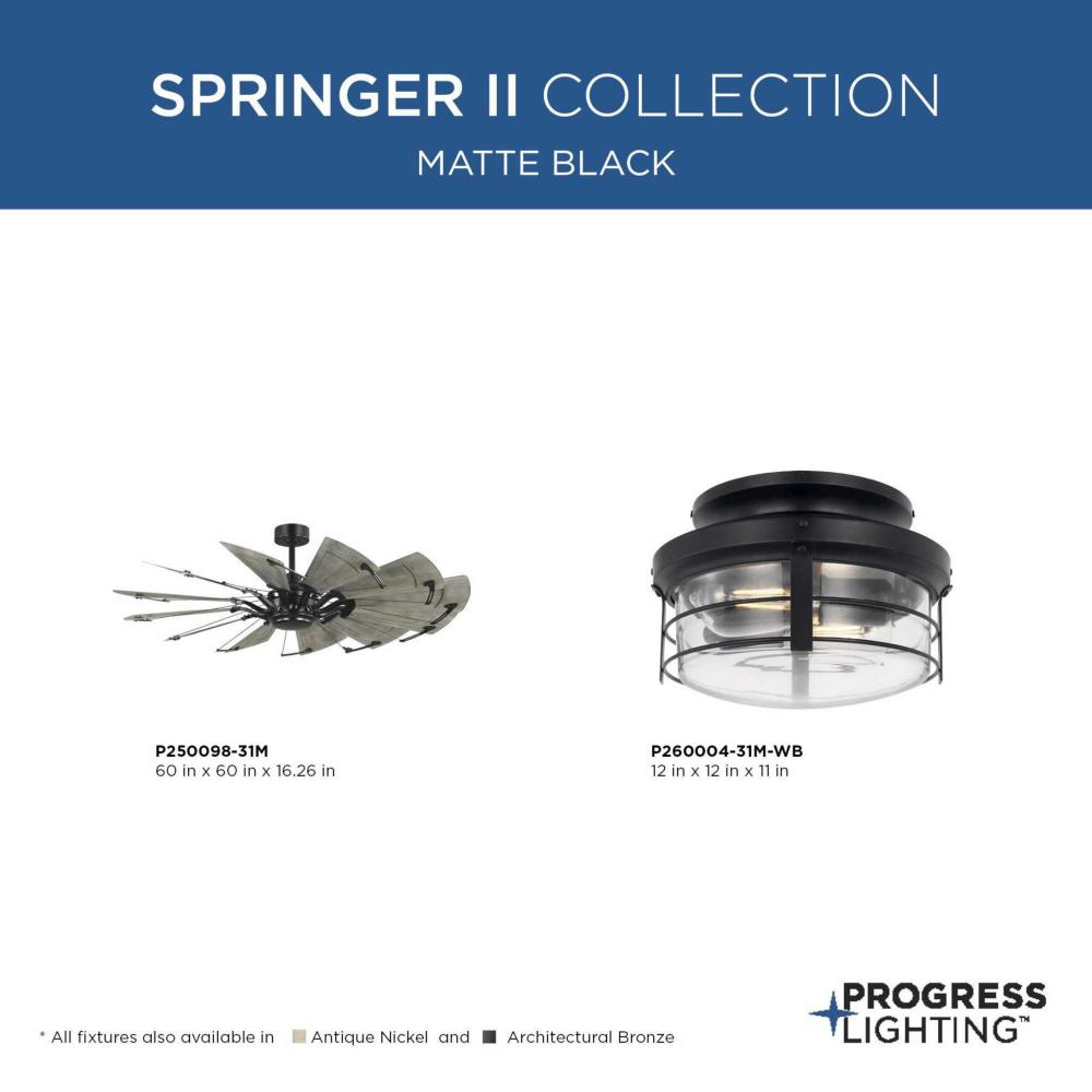 The Springer II Ceiling Fan is ideal for use indoors or outdoors in living rooms, great rooms, bedrooms or patios or covered porches