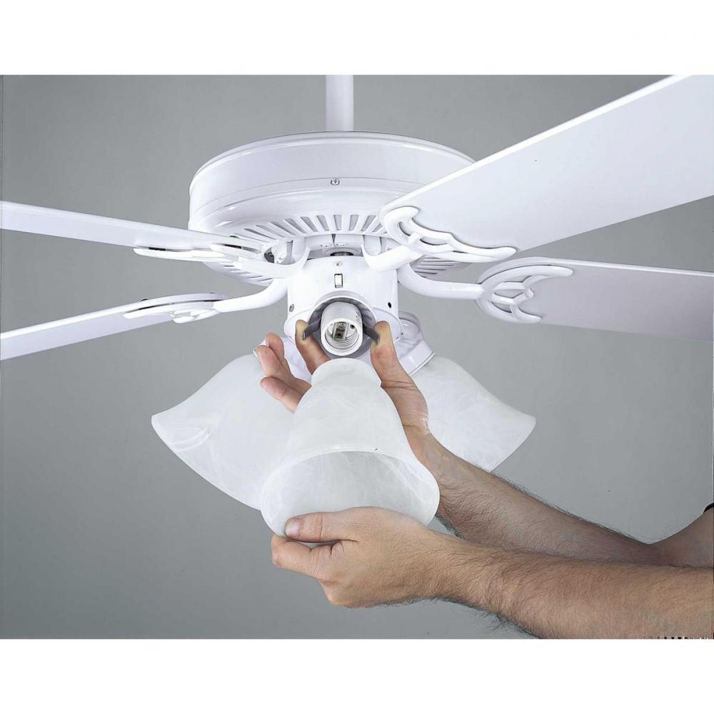 52 inch AirPro fan with 5 reversible white or washed oak blades, White finish, and 30 year limited warranty. Powerful AirPro motor features 3-speed control that can also be reversed to provide year-round comfort. Includes innovative canopy system that can be installed on vaulted ceilings up to 12:12 pitch, additionally, the fan can be installed with no downrod to accommodate lower ceilings. Quick install canopy securely holds fan for wiring during installation.