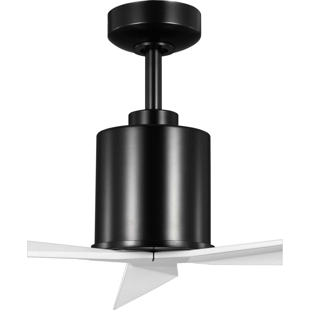 The fan's contemporary, timeless stem holds three sculpted ABS blades