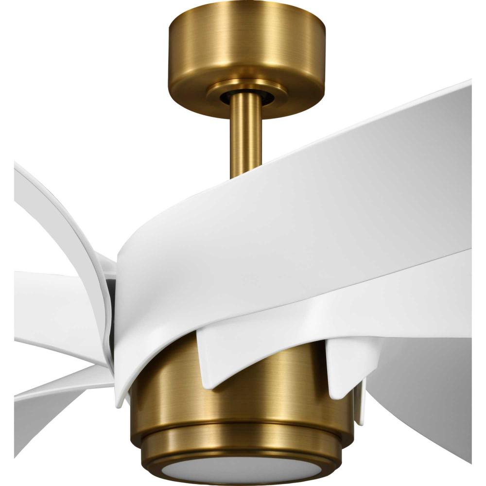 The contemporary, elegant style of the ceiling fan complements modern interiors with a graceful visual impact