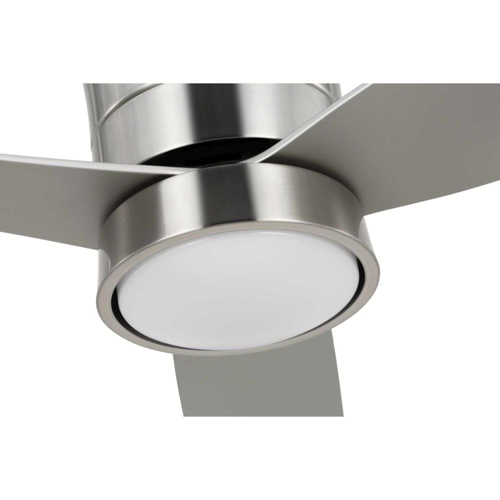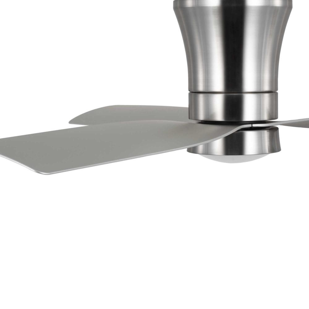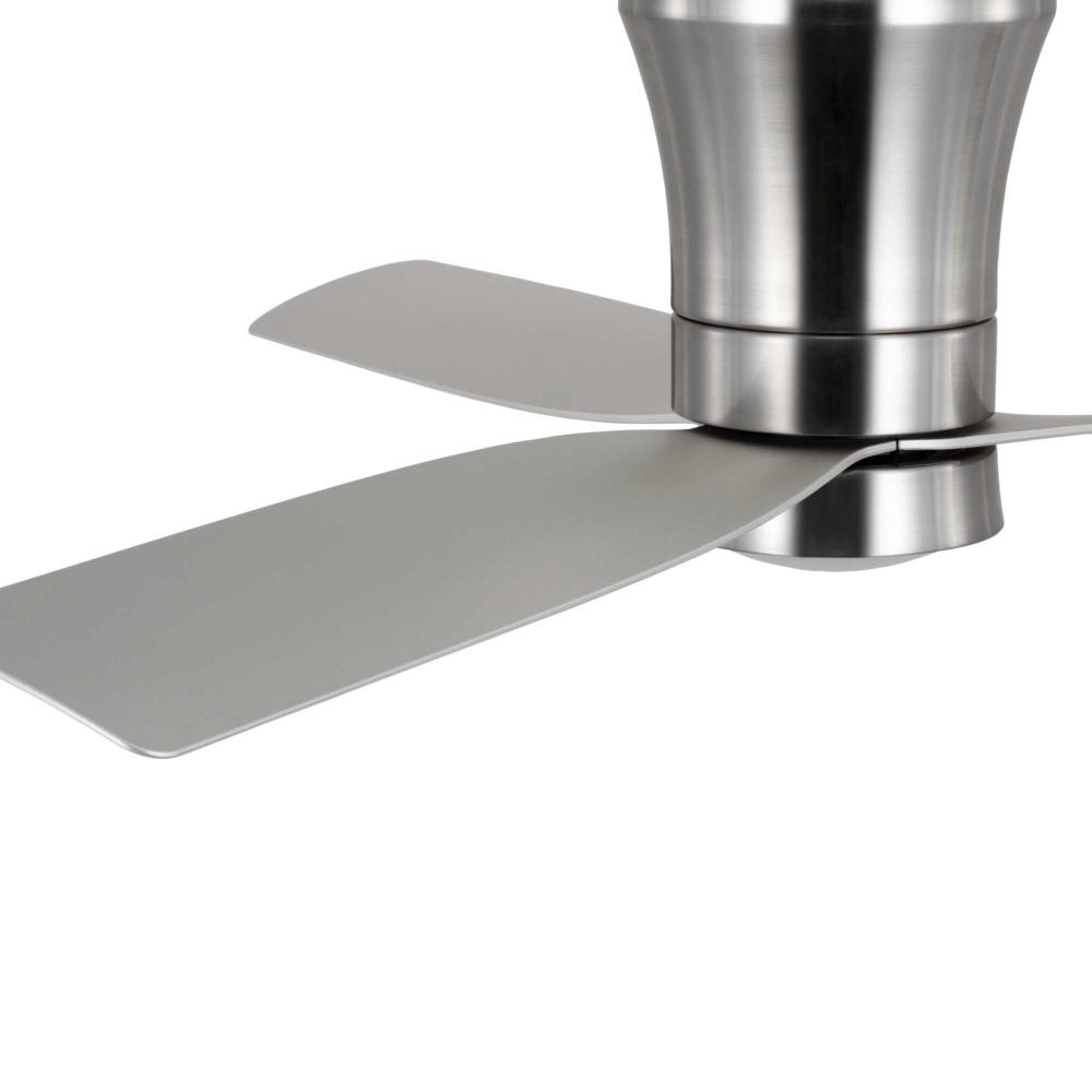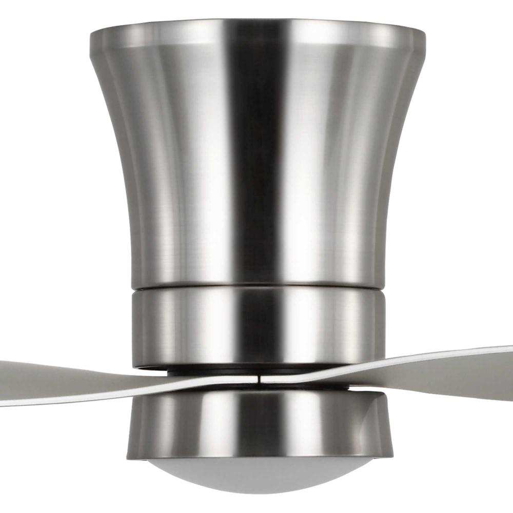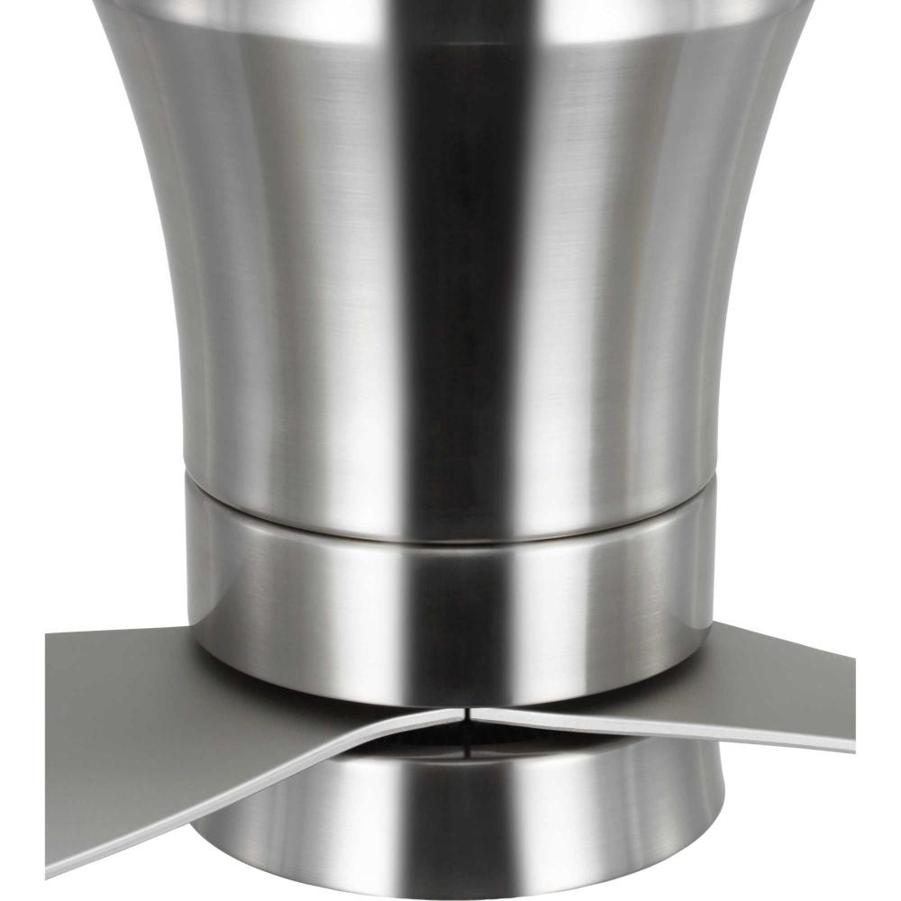 Mid-century modern style housing and blades are finished in Brushed Nickel with a Brushed Nickel Accent
