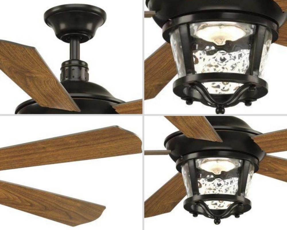 52" Smyrna ceiling fan features five blades and an LED light source, offering both form and function with energy- and cost-savings benefits;The light kit contains a clear hammered glass shade and contains a 17W dimmable 3000K LED module with 90CRI and