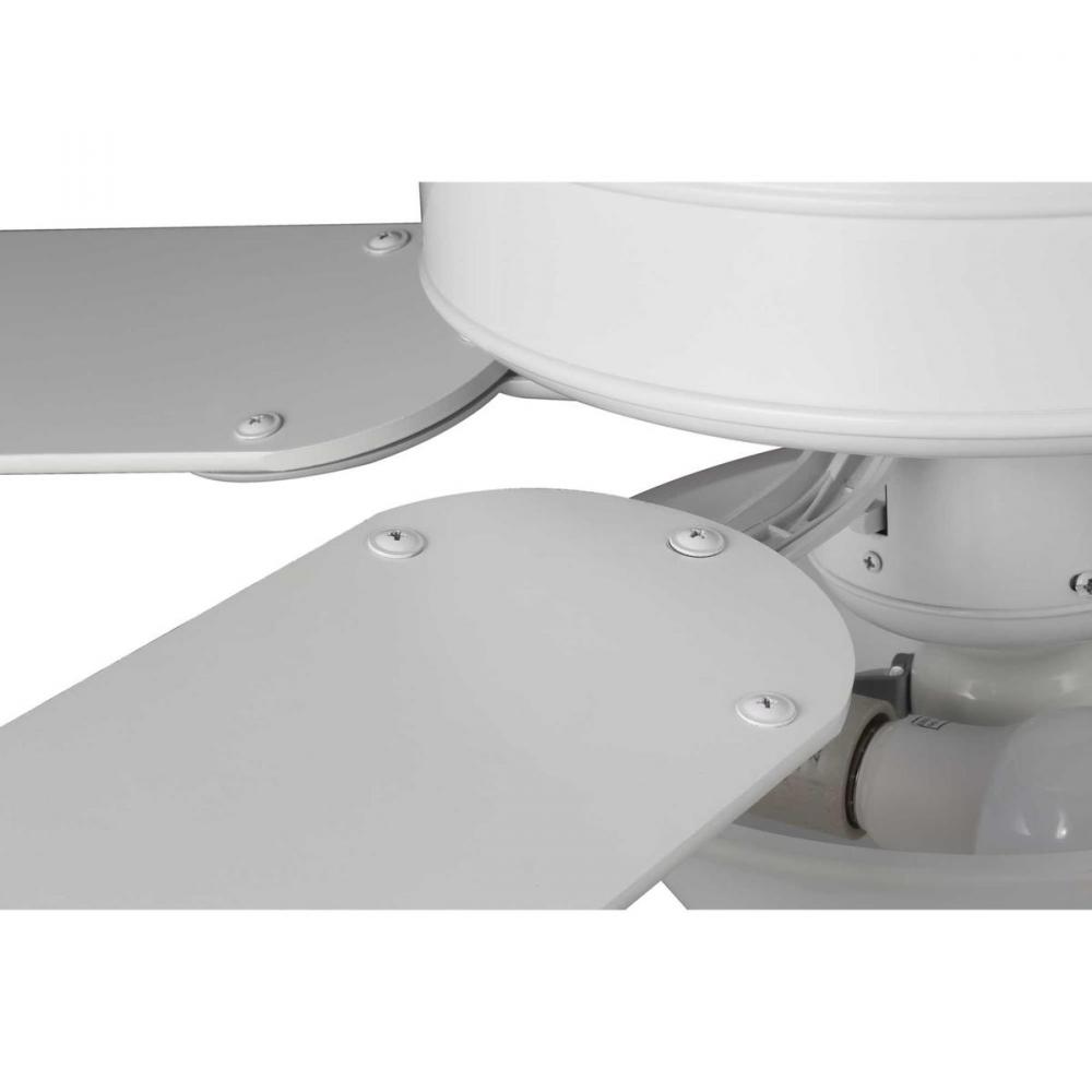 52” ceiling fan with light kit features five reversible blades;Classic White blades;Ceiling fan with timeless White finish;Features a dual mount system and a three-speed pull chain fan switch, as well as an on/off pull chain switch to operate the light;W