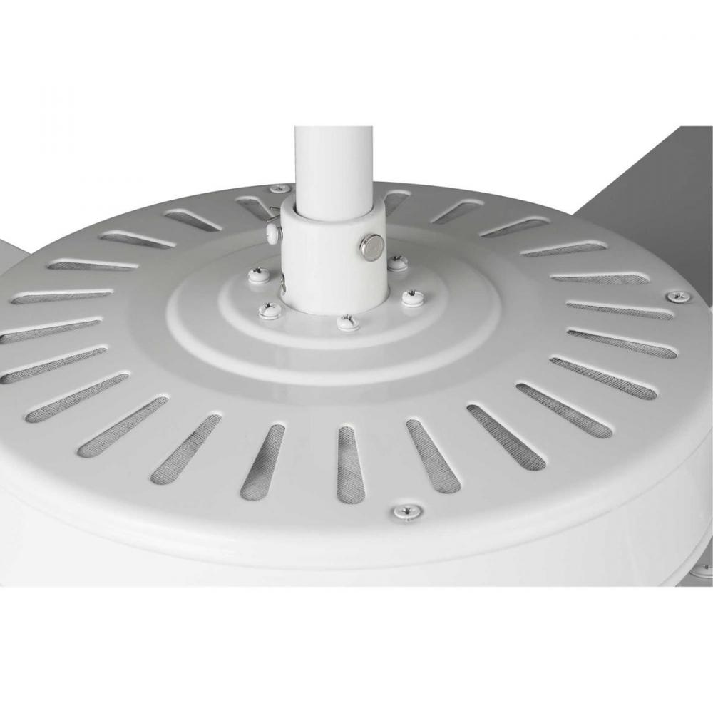 A 52 in two-light, five-blade fan with reversible blades and a beautifully crafted white etched glass bowl. Powerful AirPro motor features 3-speed control that can also be reversed to provide year-round comfort. Two medium-based LED lamps are included (non dimmable), offering energy efficiency and cost savings benefits for the home, while a dual mount canopy accommodates flat or sloped ceilings. White finish.
