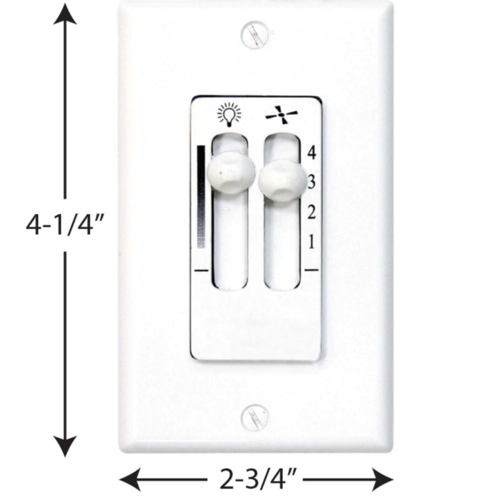 Four-speed, ceiling fan white wall control provides convenient operation for fans with pull-chain controls. Includes full-range lighting dimmer and switch plate cover. Requires two circuits - fits single gang wall box.