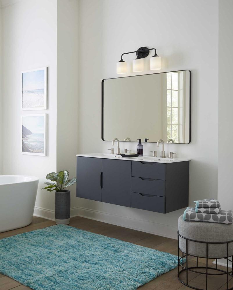 The Lynzie Vanity Light Collection offers an elegant appeal to a bathroom or powder room