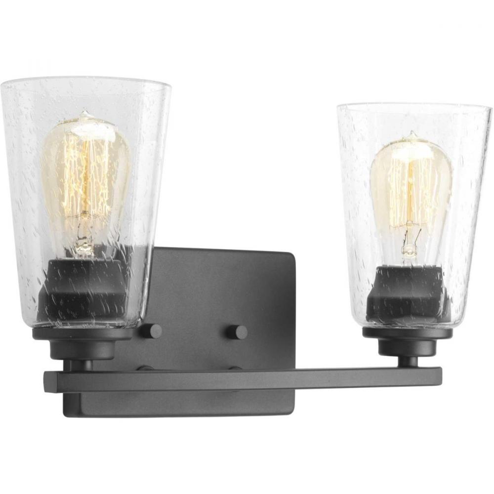 A new category of vintage modern fixtures takes center stage with this two-light bath & vanity fixture from one of our Design Series collections. Delicate details in a Graphite finish, create statement making focal pieces for a variety of interiors. Debut provides a fitting stage to feature nostalgic, vintage lamps. Glass accessory shades available in clear or frosted seeded finishes.