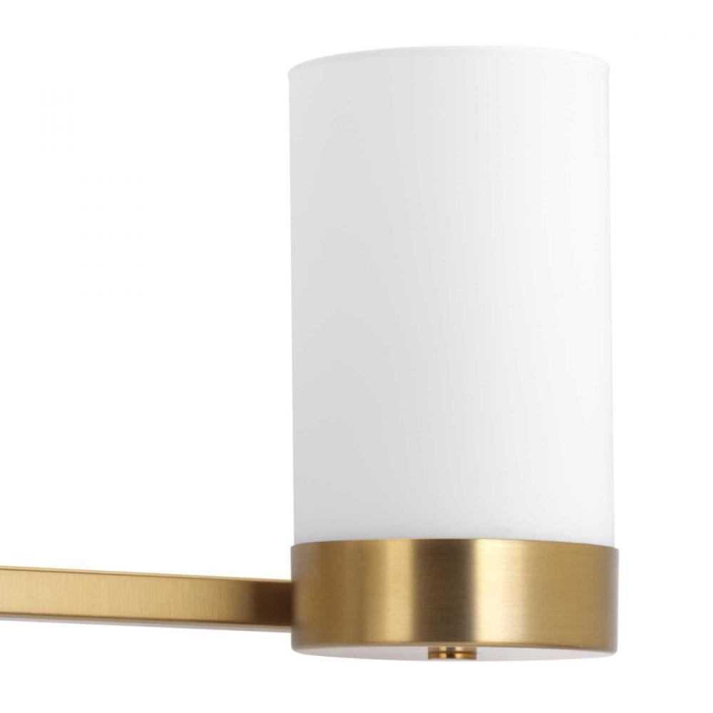Ideal for a bathroom;Perfect for mid-century modern and modern style settings;Golden brushed bronze finish;Elegant etched white glass shades;Mount the light fixture facing up or down;Use 4 medium base bulbs that are sold separately (100 W max - LED/CFL/inc
