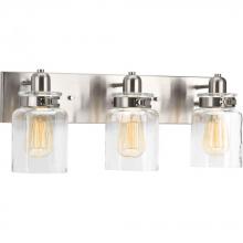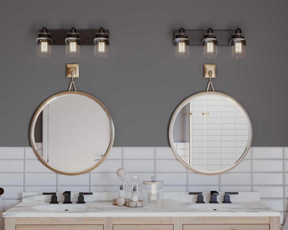 Ideal for a bathroom;Perfect for farmhouse and urban industrial style settings;Handsome antique bronze finish;Crisp clear glass shades;Mount the light fixture facing up or down;Use 3 medium base bulbs that are sold separately (100 W max - LED/CFL/incandesc