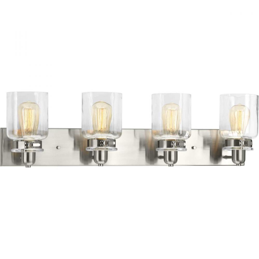 brushed nickel;fourlight bath;grey;incandescent;bath vanity;traditional;casual;modern farmhouse;bath light;bath vanity light;bathroom light;bathroom wall light;bath wall light;bath bracket;bath wall bracket