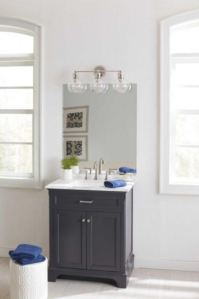 polished nickel;threelight bath;grey;incandescent;bath vanity;traditional;casual;urban industrial;bath light;bath vanity light;bathroom light;bathroom wall light;bath wall light;bath bracket;bath wall bracket