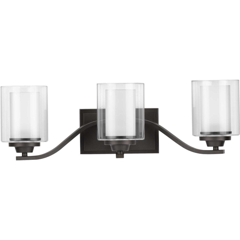 Ideal for a bathroom;Perfect for craftsman, modern, modern craftsman, modern mountain, and transitional style settings;Gorgeous graphite finish;Crisp clear glass outer shade surrounds etched glass;Mount the light fixture facing up or down;Use 3 medium base