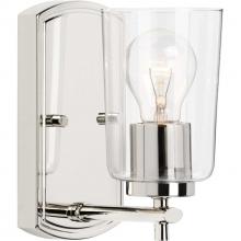 Create a haven for relaxation and revival with the Adley one-light bath. This fixture features a Satin Brass, curved backplate attached to a simple, clear glass shade. The modern piece is perfect for adding ambient light to bathroom and vanity settings in traditional and transitional interiors.
