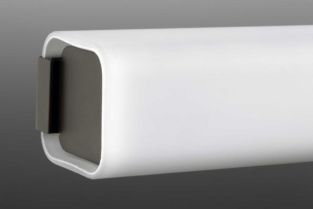 Beam LED Bath and vanity features a squared, tubular opal glass diffuser paired with a simple, modern metal canopy. An integrated LED source provides a variety of energy and cost savings benefits. Suitable for residential and commercial applications, This fixture can be installed horizontally or vertically. 22" Linear LED Bath. Architectural Bronze finish.