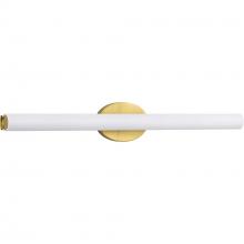 32" Parallel LED bath and vanity fixtures feature a tubular opal glass diffuser paired with a simple, modern oval metal canopy. An integrated LED source provides a variety of energy and cost savings benefits. Suitable for residential and commercial applications, and can be installed vertically or horizontally. Architectural Bronze finish.
