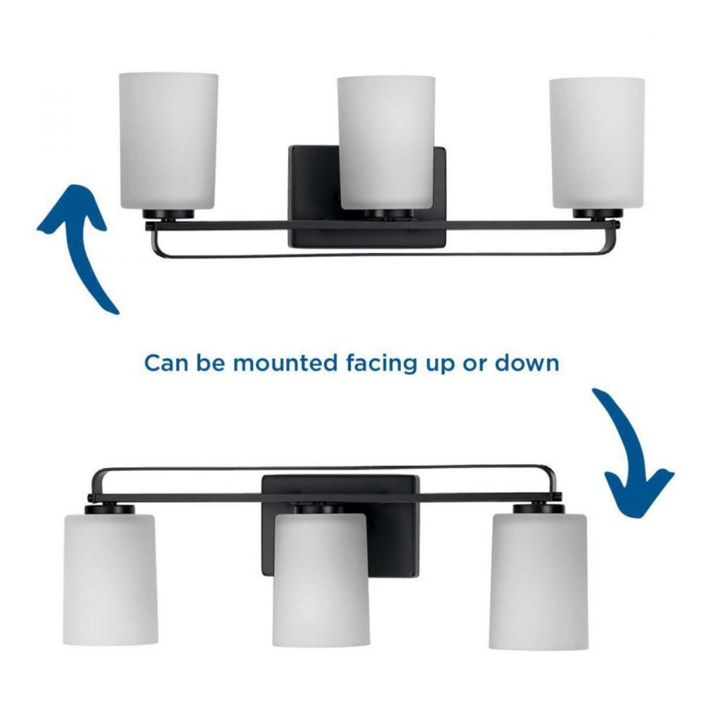 APPLICATION: Distinguish your home with clean modern design with the League Collection Three-Light Matte Black and Etched Glass Contemporary Bath Vanity Light ideal for any bathroom.;STYLES: Perfect for modern farmhouse and contemporary style settings.;FIN
