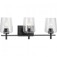 Ideal for a bathroom;Perfect for new traditional style settings;Golden vintage brass finish;Crisp clear glass shades;Use 3 medium base bulbs that are sold separately (60w max - LED/CFL/incandescent), compatible with dimmable bulbs;Measures 8-1/2-inch heigh