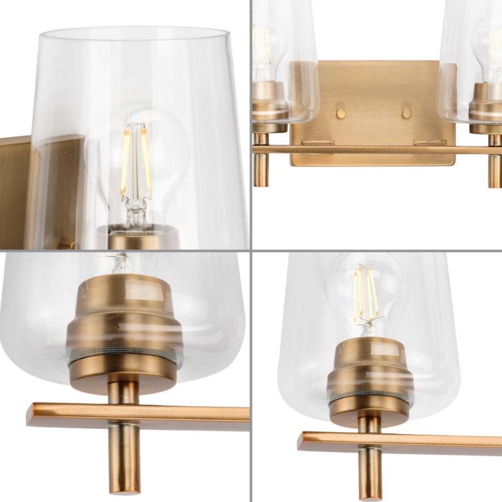 Timeless details create an enduring silhouette making this elegant vanity light perfect for the bathroom;Its beautiful clean design complements new traditional and transitional interiors;Clear glass shades provide a contemporary take on a traditional bath