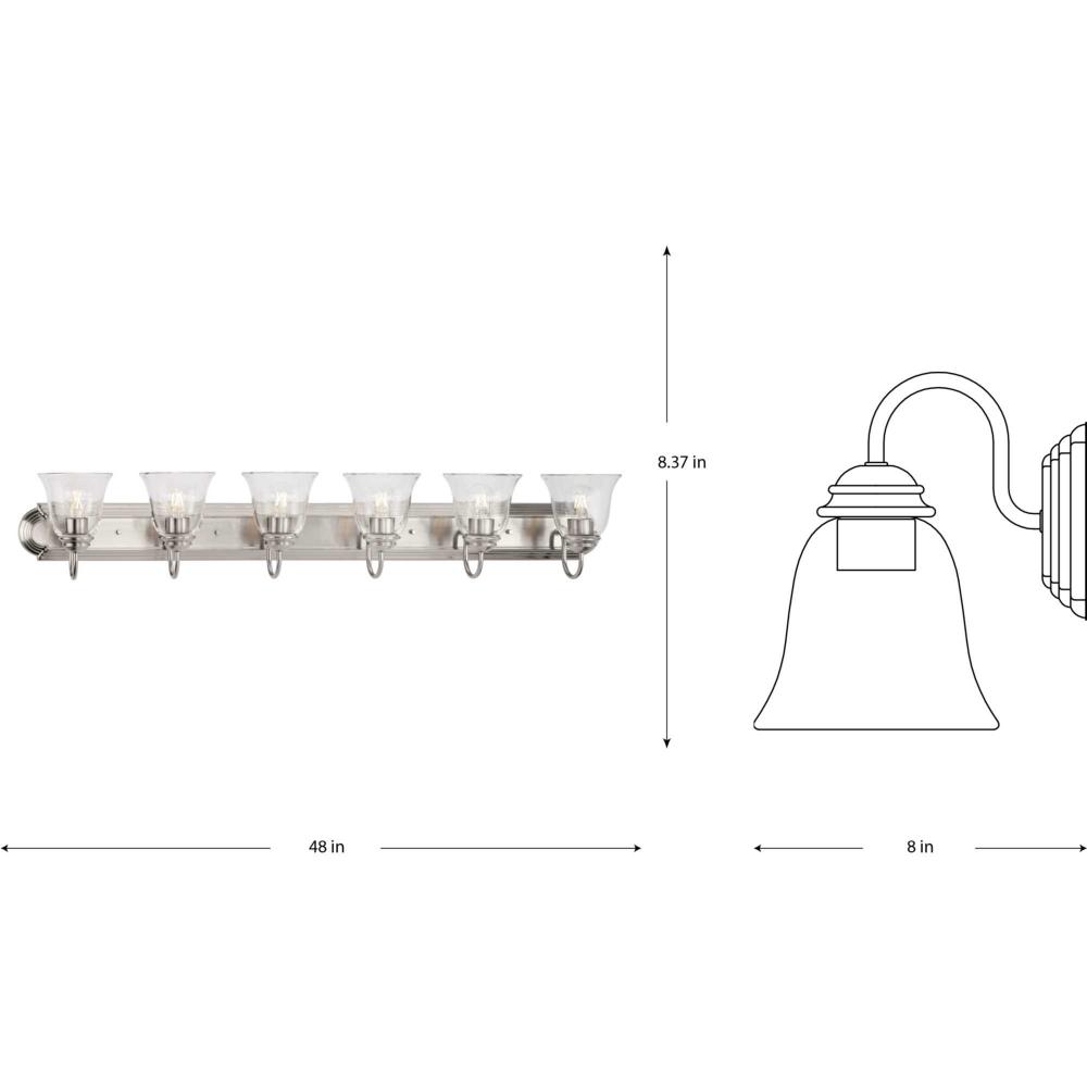 For transitional bathroom or vanity settings that seeks illumination, look no further than this clear glass vanity light collection. It features an updated transitional design finished in brushed nickel complemented by clear glass flared shades that offer classic appeal. An extended backplate with scalloped edges provides generous coverage for easy installation. This versatile fixture can be mounted with glass facing up or down to provide the perfect amount of even illumination.