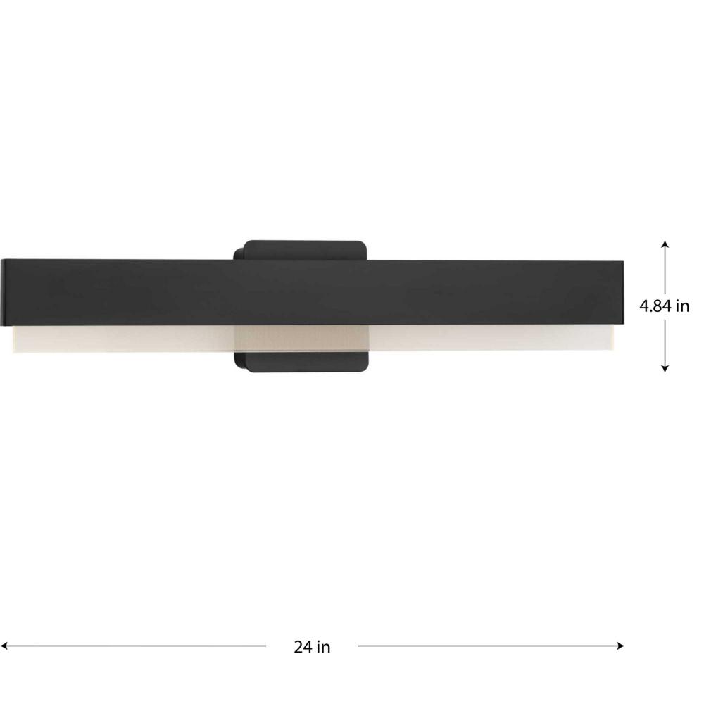Add contemporary style to bathrooms with the Semblance Collection LED Medium Linear Vanity light. This versatile design is ideal for any bathroom in contemporary or modern commercial or residential settings. Progress Lighting products are designed for exceptional quality, reliability, and functionality. Anchored by a sleek, square backplate, a handsome rectilinear metal bar holds an acrylic diffuser along its length, creating edge-lit illumination. Finished in crisp matte black. Color selectable technology offers a choice of 3000K, 4000K or 5000K at a flip of a switch to perfectly illuminate surroundings with multi-directional, energy-efficient light. This versatile design is ideal for any bathroom in contemporary or modern commercial or residential settings. Progress Lighting products are designed for exceptional quality, reliability, and functionality.