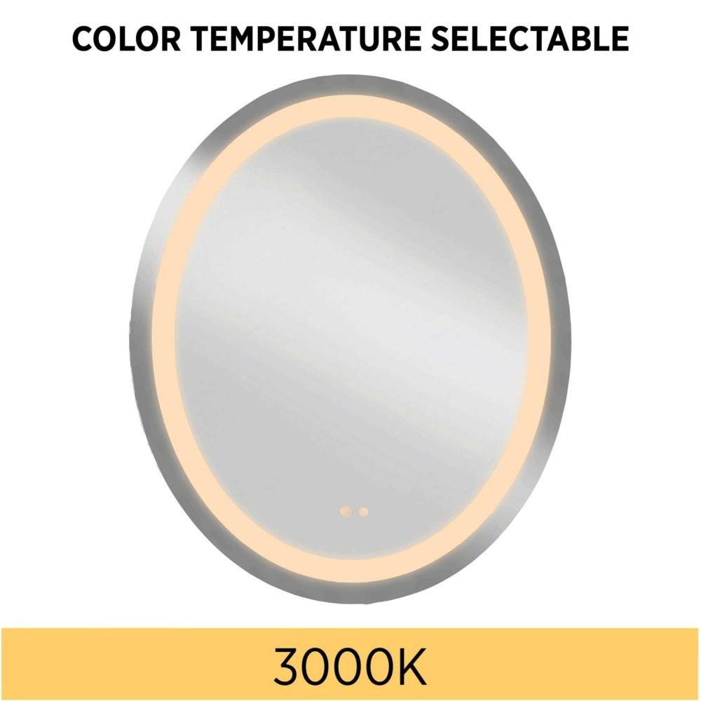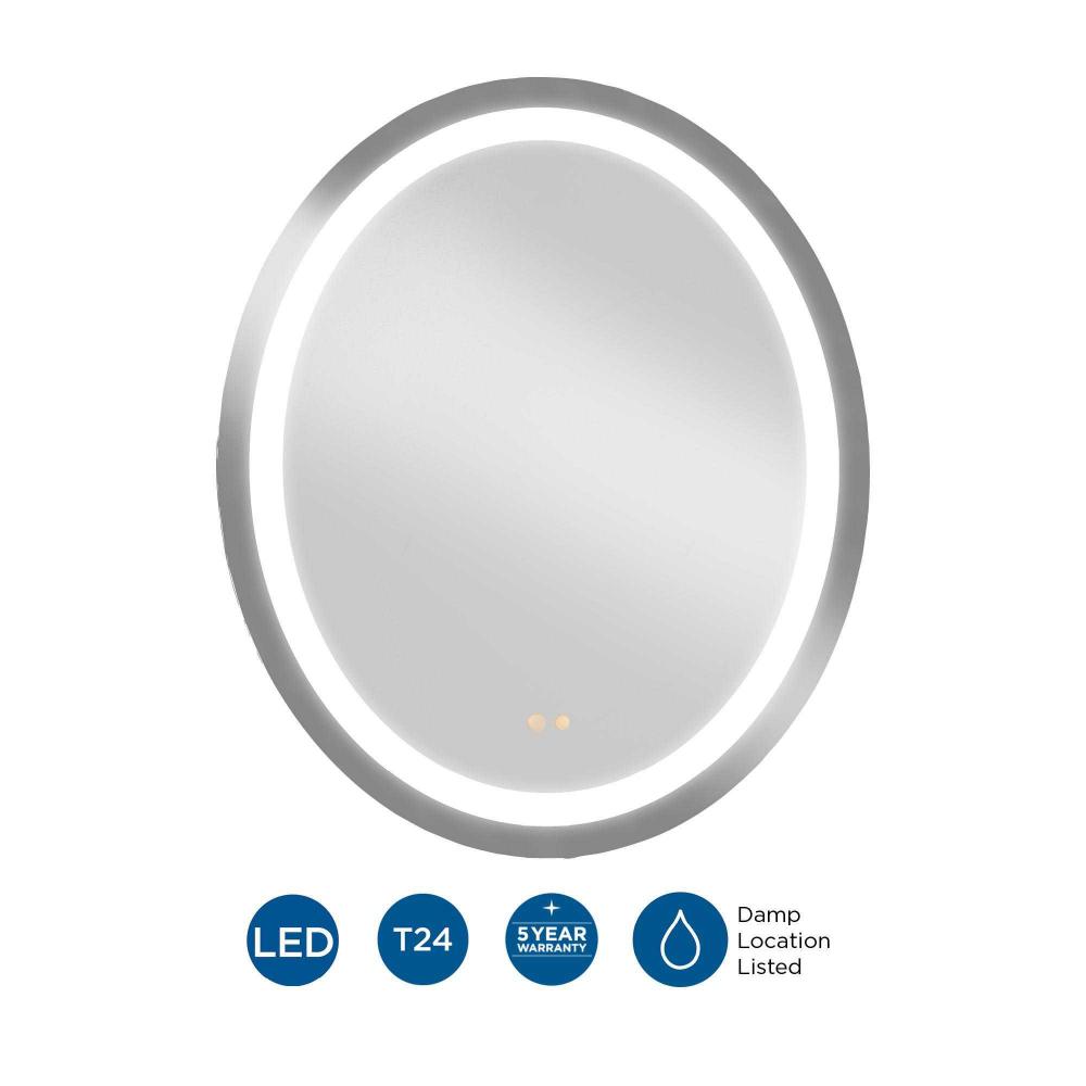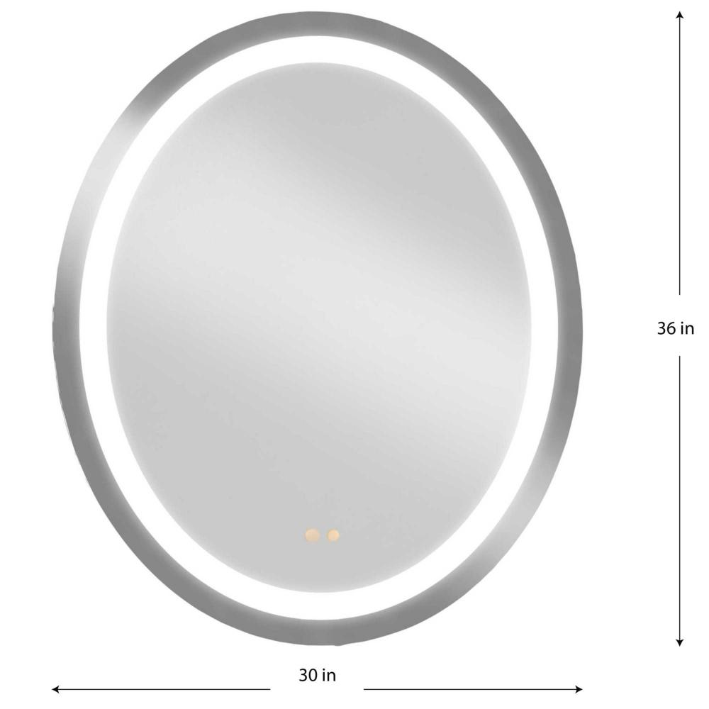 A luxe addition to the modern bath, the Captarent Oval 30-in x 36-in Illuminated Mirror brings a luminous glow to the room. Frosted LED light highlights the geometric profile of the mirror while providing a balanced wash of LED illumination. The dimmable light source is 3CCT selectable, with a choice 3000K, 4000K, and 5000K color temperature all at your fingertips with push-button touch control technology to ensure uniform and flattering illumination for your space. The mirror's versatile front-lit design is ideal for modern commercial or residential bathrooms. The mirror is packed in sustainable, honeycomb cardboard, minimizing waste and supporting eco-conscious living. It holds certifications including cETLus damp location rating, making it suitable for areas with moisture exposure. It also complies with California Title 24, JA8, and ADA standards, ensuring safety, energy efficiency, and accessibility. Progress Lighting products are designed for exceptional quality, reliability, and functionality.