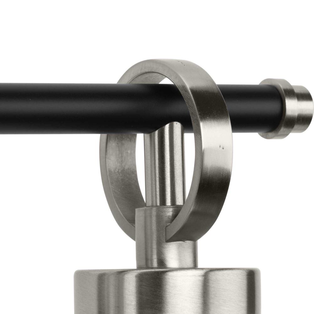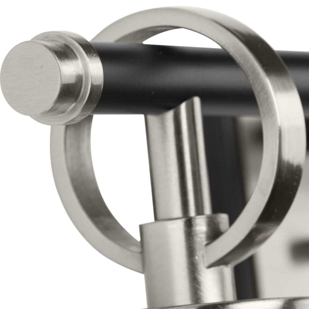 The fixture's brushed nickel and matte black accents provide an elegant, detailed look in luxe industrial and contemporary interiors