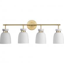 The Lexie Four-Light Vanity Light is full of spunk with a fresh new style for todays home. A slender minimalist frame finished in Matte Black supports opal glass shades with a distinctive cinched metallic collar.The versatile fixture can be mounted facing up or down, offering the perfect amount of illumination to the room.