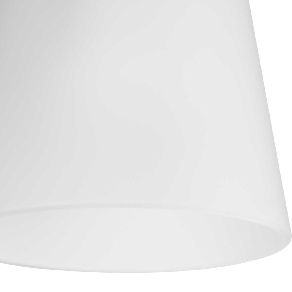An etched glass shade provides subtle illumination