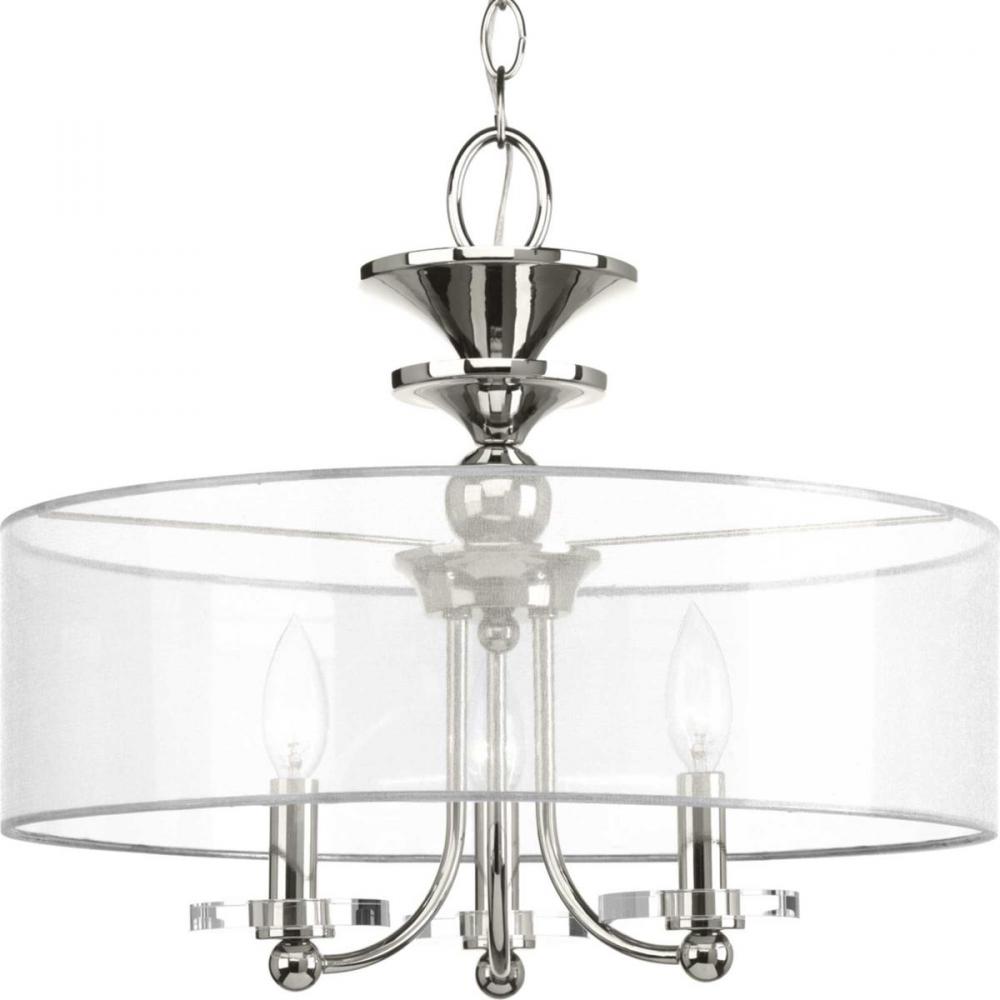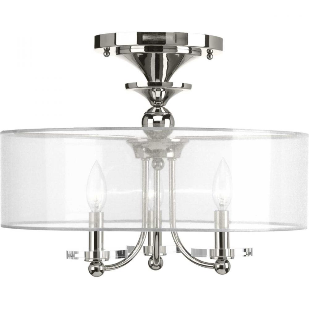 Polished Nickel elements and luxurious sheer silver organza shade.;Clear K9 glass discs;Recreates vintage styles found in Parisian neighborhood markets;Polished Nickel finish.;Part of the Design Series Collections offering high style and design.