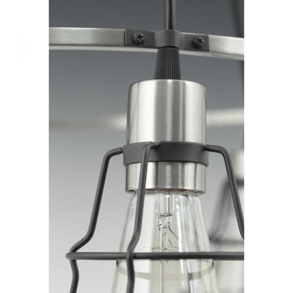 Graphite finish with Brushed Nickel accents.;Industrial inspired design.;Features an open cage with hinged door.;Shown with Vintage lamps (P7825-01).;Brushed Nickel accents.