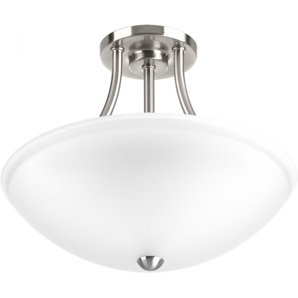 Design highlights smart simplicity to complement today's home;One light semi flush convertible;Popular Brushed Nickel finish;Etched glass shades add distinction;Features 17-watt integrated LED to deliver energy savings and reduce long-term maintenance