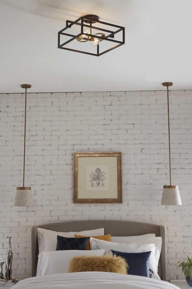 The Blakely collection two-light semi-flush reversible fixture is a fashion-forward design style. A rectangular frame celebrates geometric interplay with clean, straight lines. Finished in Graphite with satin brass accents, the Blakely collection is ideal for Modern and Traditional interiors.