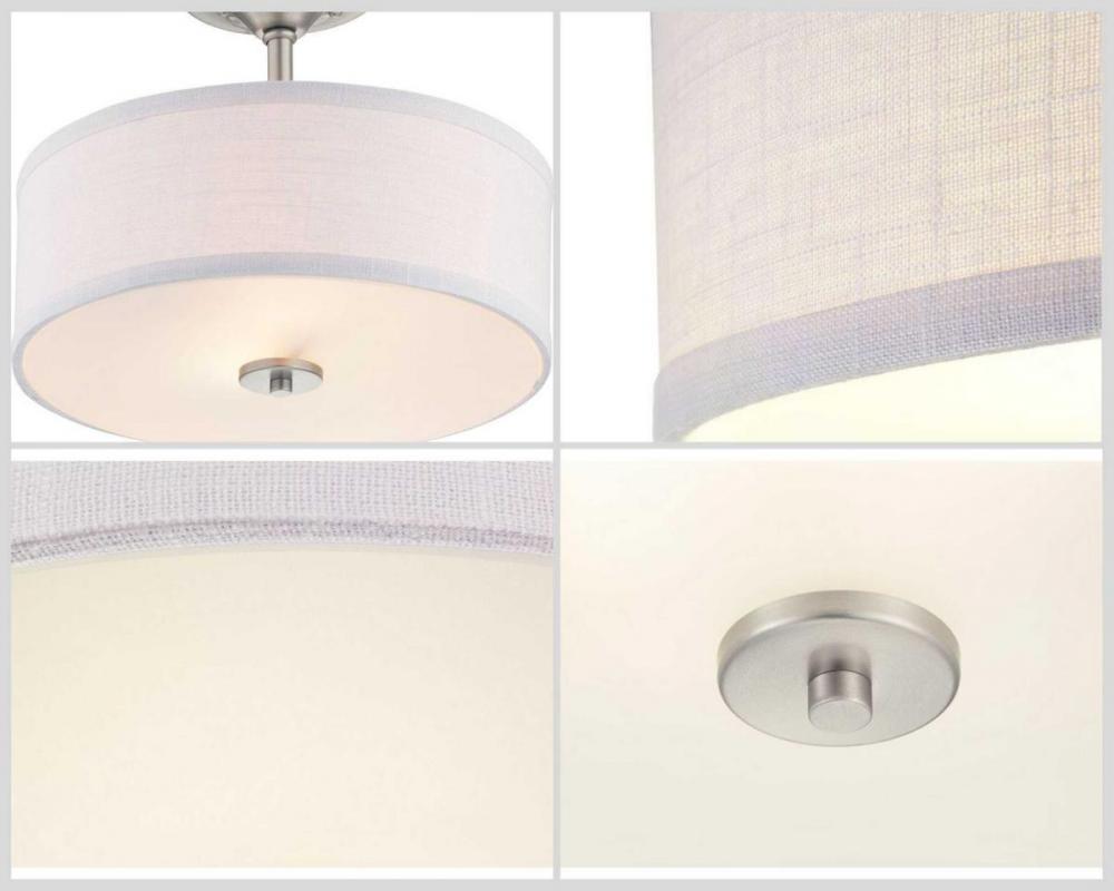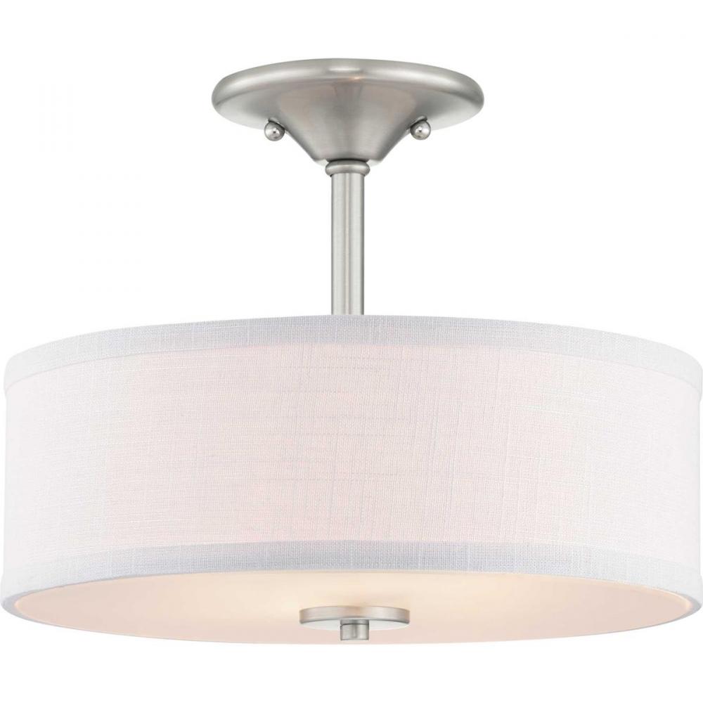 Harkening back to a simpler time, the Inspire Collection freshens traditional forms with flowing lines. The two-light semi-flush fixture features an etched glass diffuser with a summer linen shade finished with Brushed Nickel details. This fixture is suitable for a variety of design styles, including Modern, Traditional and Farmhouse and the simple design is a perfect complement to a variety of fixture collections.