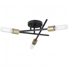 The Astra semi-flush mount light features a space-age-inspired design perfect for modern and mid-century décor. A trio of spoked arms radiate out from a cylindrical down rod suspended from a center round canopy, bringing a dynamic flair to the fixture's design. A matte black finish adds a touch of sophistication. Decorative bulbs (sold separately) adorn the ends of each perpendicular arm. The generous scale is ideal for bringing illumination to bedrooms, hallways and family rooms. This fixture is part of the Progress Lighting Design Series, a lighting collection offering fashionable styles and affordable luxury lighting for the home.