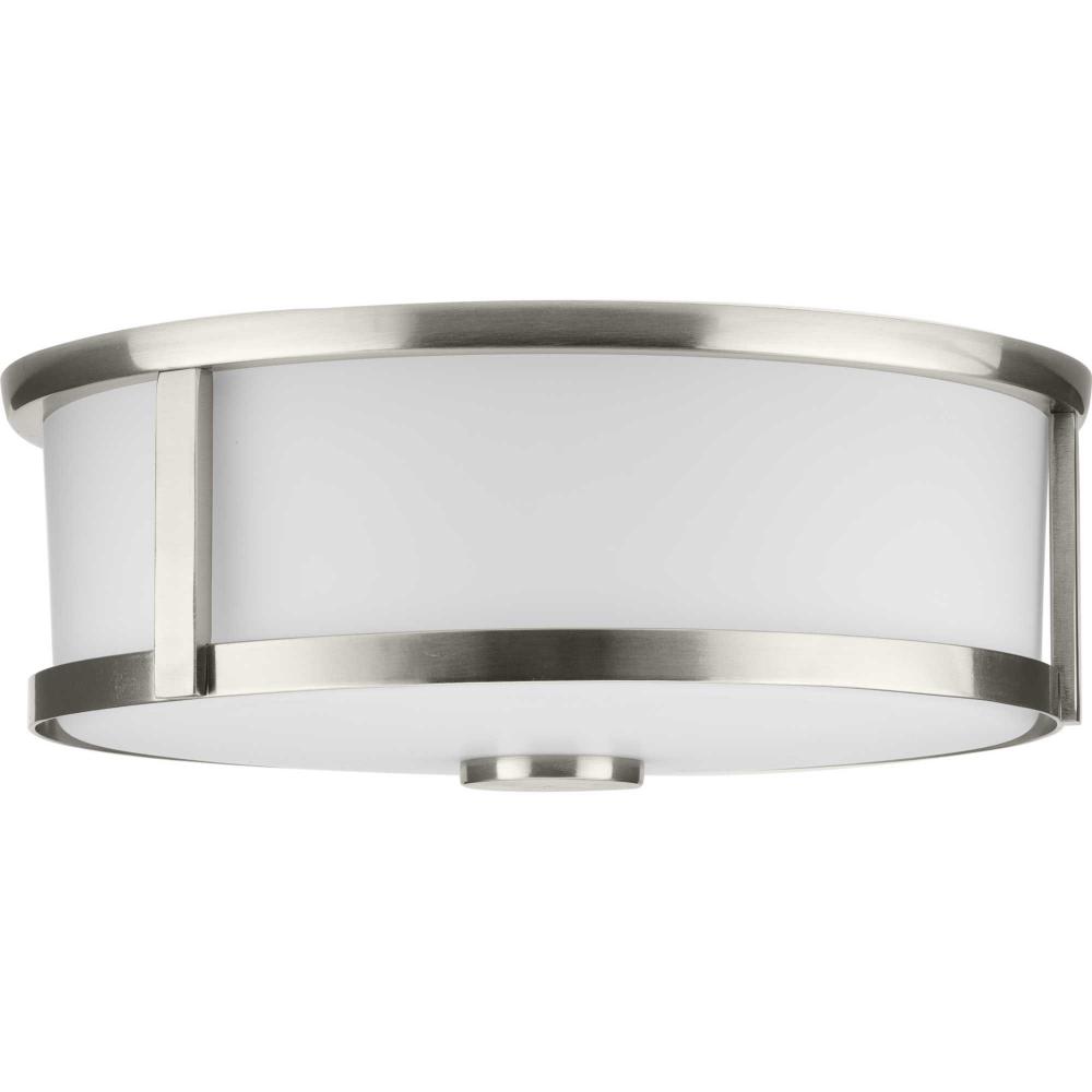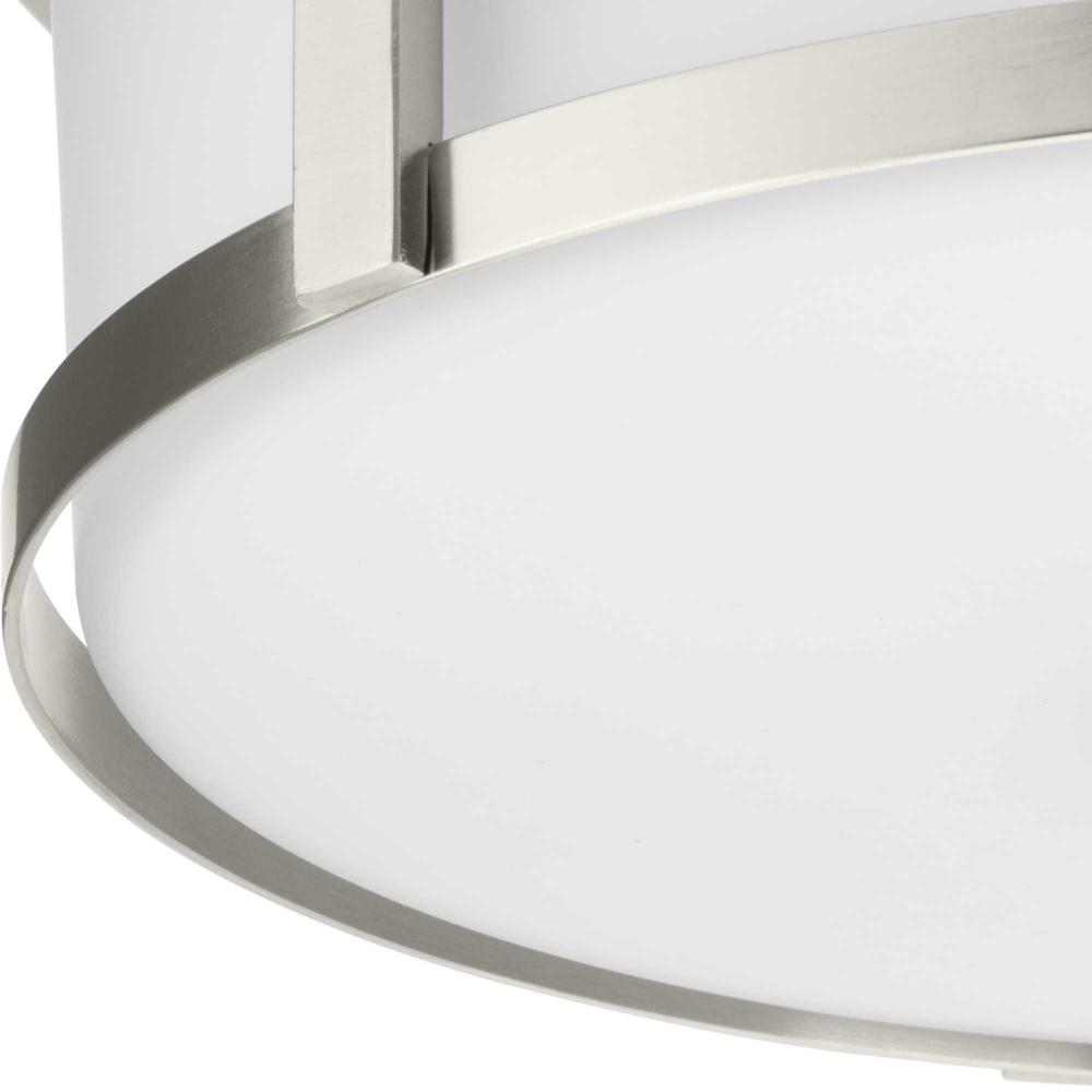 The fixture is coated with a subtle brushed nickel finish, accenting contemporary settings with a classic touch